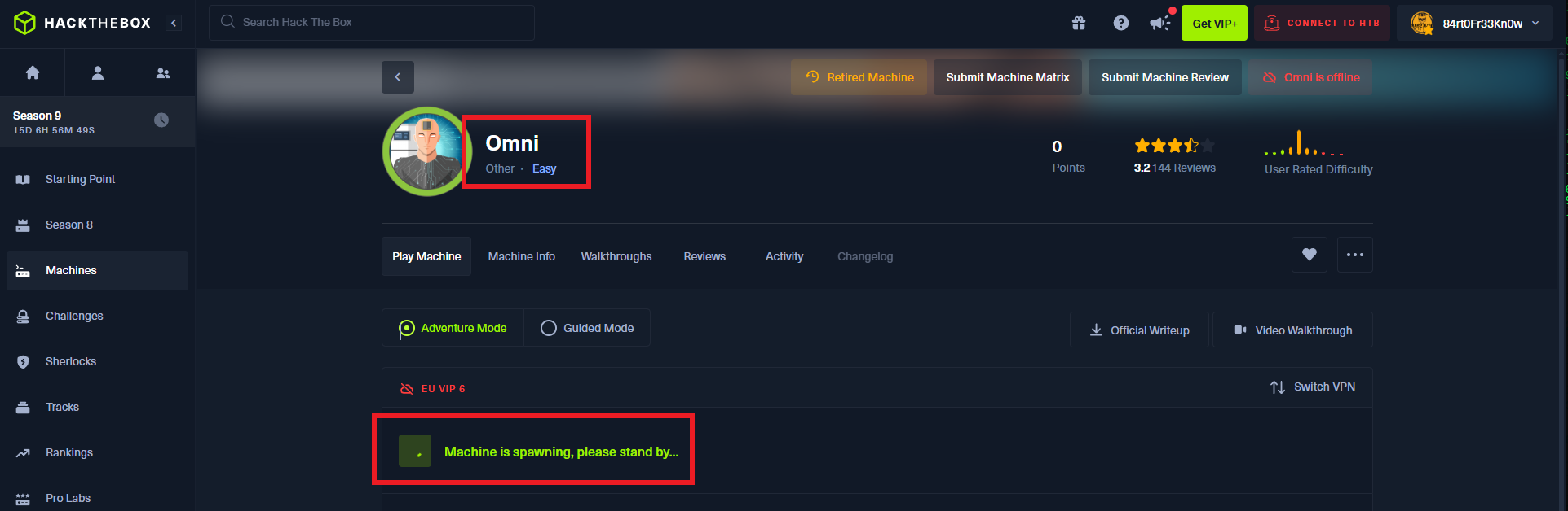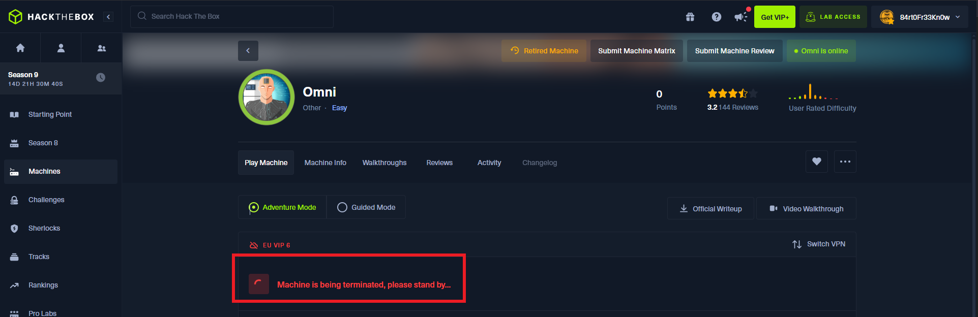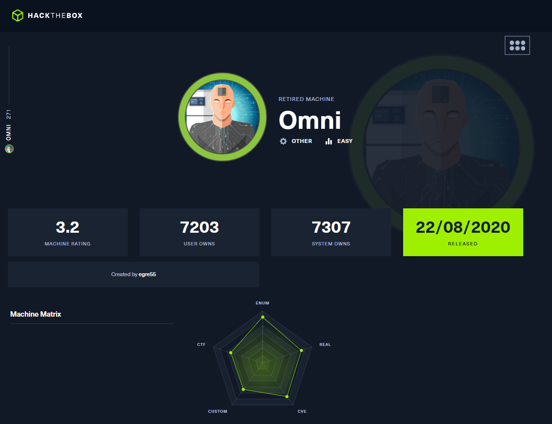 With each new Hack The Box lab, I discover how much I can continue to learn about the world of Information Security, as it is so vast and impossible to cover so much knowledge. I’m going to continue practicing on this excellent platform and then choose which field I want to work in, thus avoiding the frustration of wanting to know too much, which can have the opposite effect to what I’m aiming for. I kill the Omni box to choose my new target.