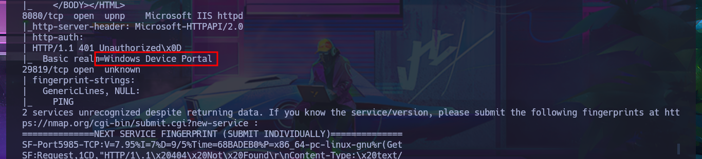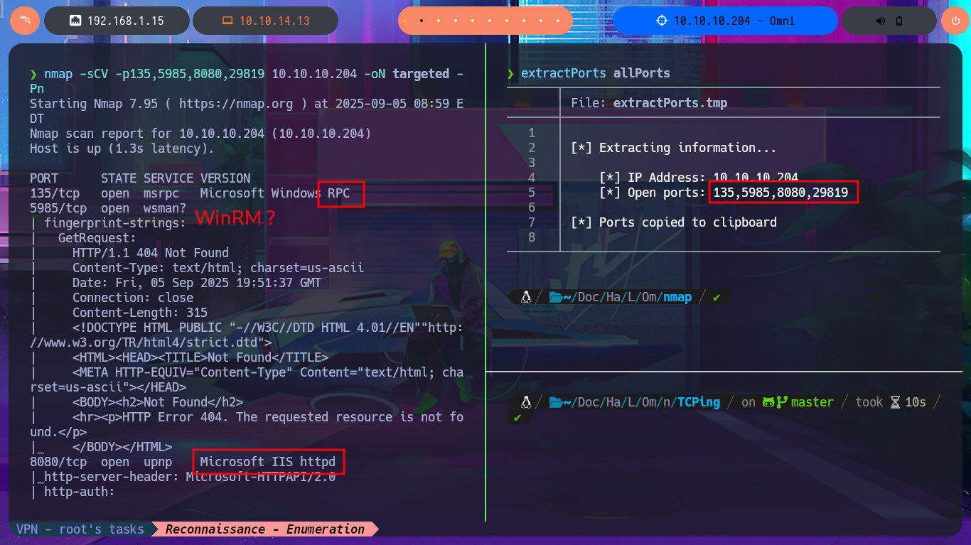 nmap -sCV -p135,5985,8080,29819 10.10.10.204 -oN targeted -Pn