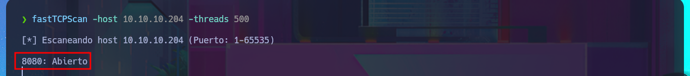 fastTCPScan -host 10.10.10.204 -threads 500