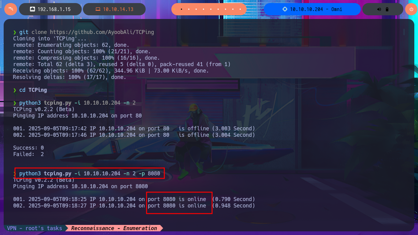 python3 tcping.py -i 10.10.10.204 -n 2 -p 8080