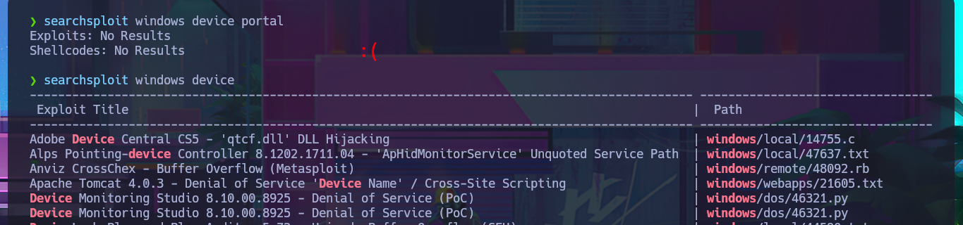 searchsploit windows device portal
