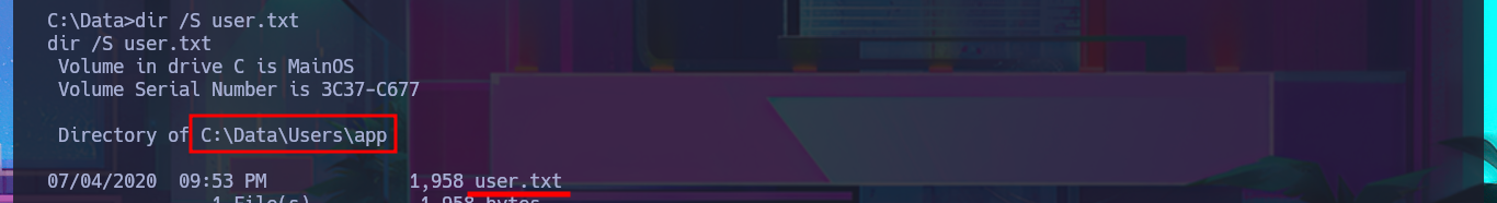 dir /S user.txt
