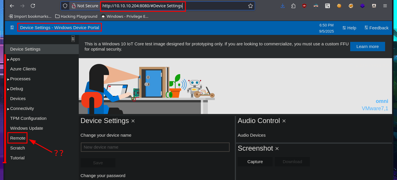 SirepRAT (RCE as SYSTEM on Windows IoT Core): The method is exploiting the Sirep Test Service that’s built in and running on the official images offered at Microsoft’s site. This service is the client part of the HLK setup one may build in order to perform driver/hardware tests on the IoT device. It serves the Sirep/WPCon/TShell protocol.