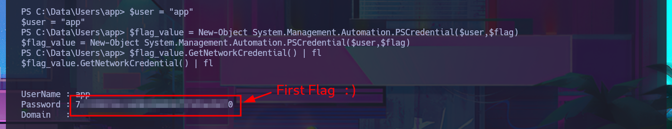 $flag_value = New-Object System.Management.Automation.PSCredential($user,$flag)