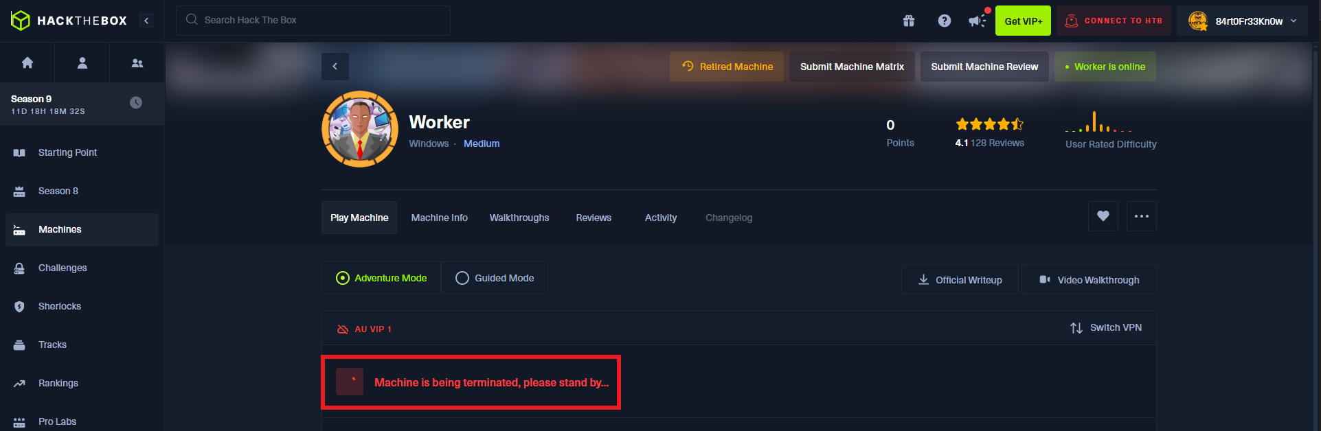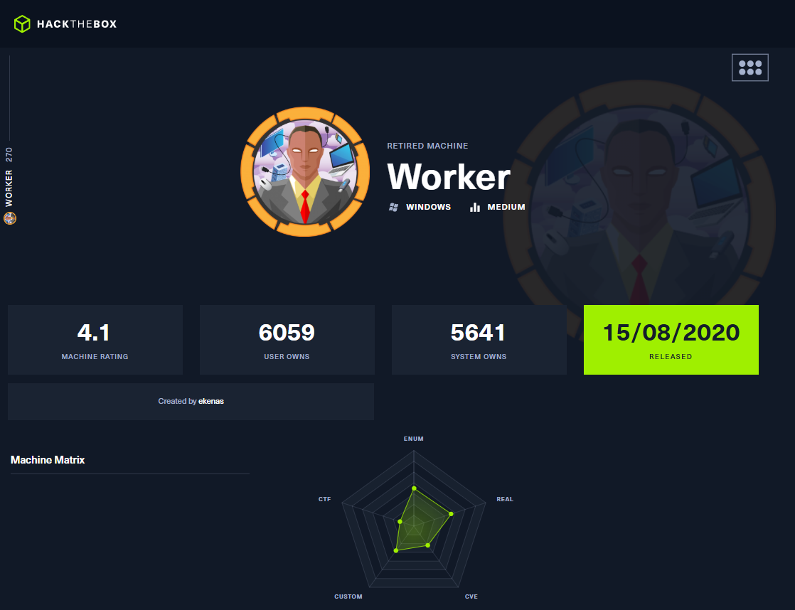 After finishing the Frolic machine, in which I had to apply techniques to exploit a BoF and ended up exhausted, I decided to return to labs with Windows OS, and the Worker machine was my choice, rated as Medium by the community, thinking that it would not be very complex and I would be able to relax a little so as not to become overwhelmed with so much information. I really enjoyed the machine because I was able to gain a lot of knowledge related to Azure and SVN, as I was unfamiliar with these technologies, but I couldn’t relax for a second as I had hoped. This feeling of being stressed is also an experience that I must reflect on, work on, strengthen, and keep in mind, as it is very present in Pentesting work, in addition to frustration. I thought the box was excellent because I had to research, read, test, and make mistakes over and over again until I completed it, but I learned a lot, as well as new techniques that I can add to my toolbox. I just need to spawn the machine to start my writeup.