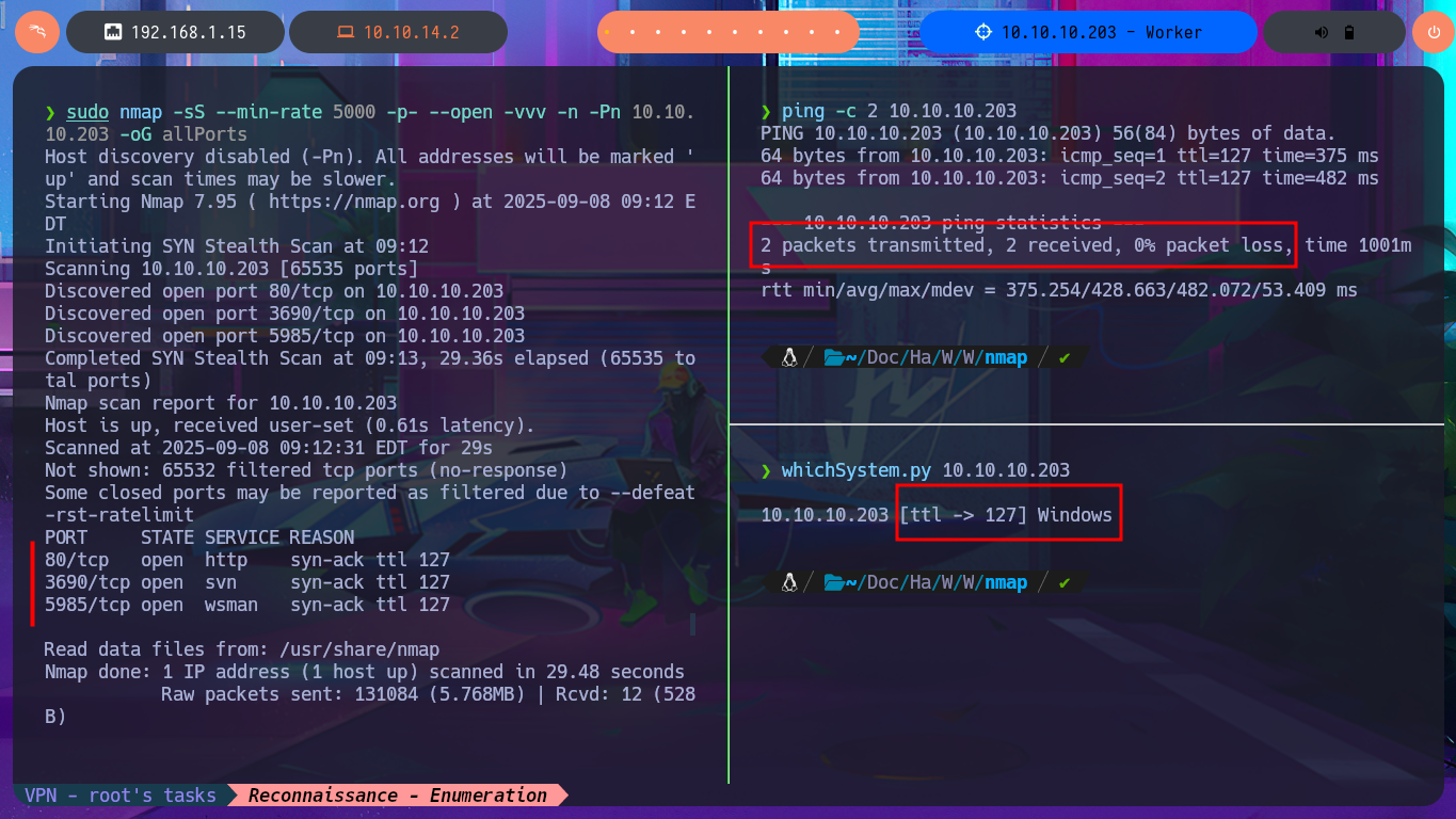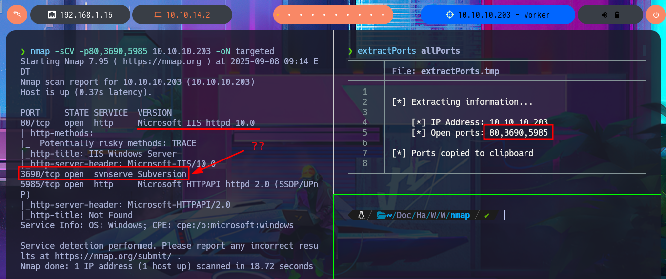 nmap -sCV -p80,3690,5985 10.10.10.203 -oN targeted
