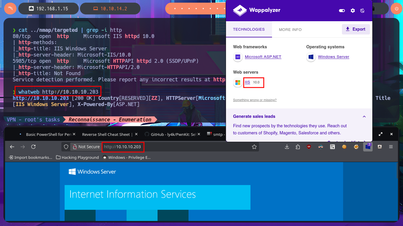 With the ping tool, I send a trace to the lab to validate my connection to it, and with the whichSystem.py tool, developed by hack4u, I’m fairly certain that I’m dealing with the Windows OS — this tool relies on the TTL value of the OS closest to that of the machine being evaluated. Now I can begin the Reconnaissance phase with nmap, which allows me to obtain a list of open ports, which, curiously, are very few since it is a Windows machine. There is a very strange port that I don’t remember finding on any other machine I’ve worked on, and thanks to nmap’s custom scripts, I can find information about the services available on each port found. The strange service in question is Subversion, but before investigating this technology further, I begin to enumerate the HTTP protocol (port 80), which always represents the largest attack surface. Unfortunately, with whatweb from my terminal and Wappalyzer from the browser, I’m unable to obtain much information after disclosing the technology stack behind the web application.