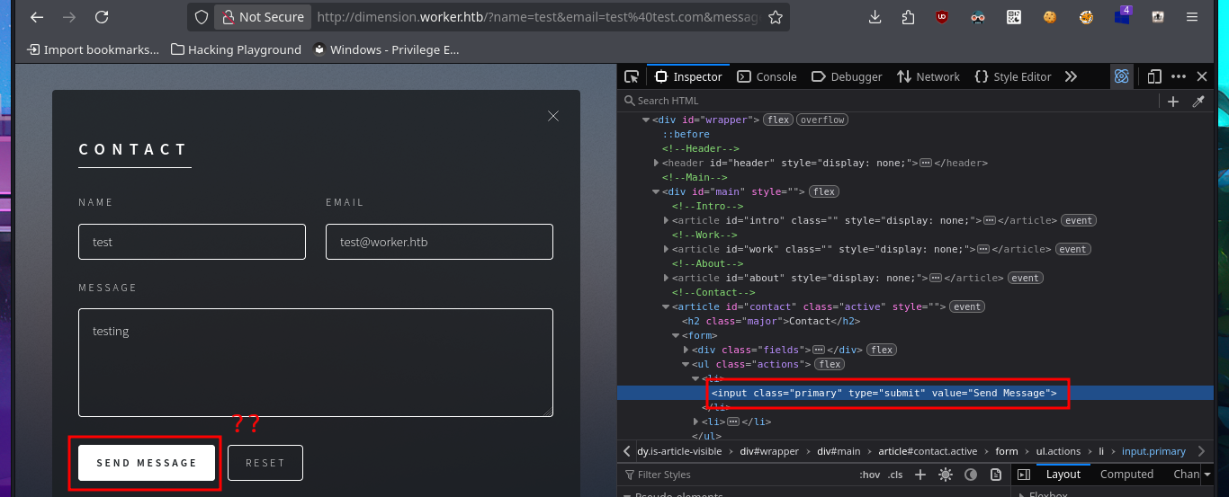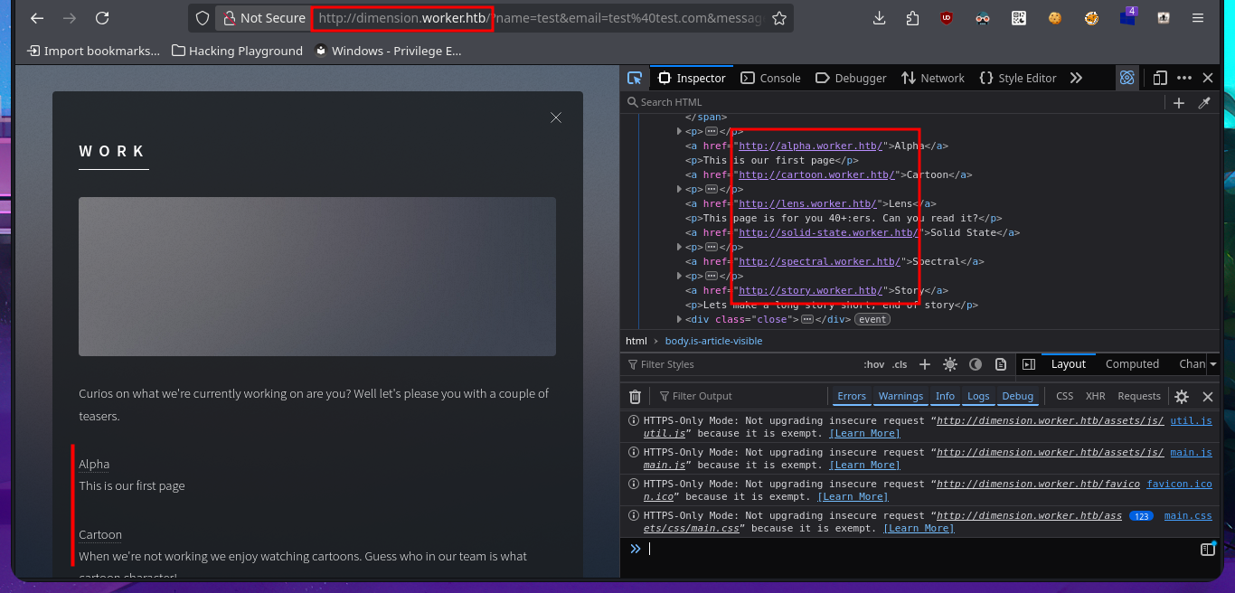 At the moment, the HTTP protocol does not provide me with any possible attack vectors, so I begin my investigation of port 3690 and find a lot of information about the Apache Subversion version control system. Before enumerating the service, I perform Banner Grabbing with nc and then with the svn tool, I begin to leak information from old versions of files and directories. I start to gather some very interesting information, such as a subdomain and files, and there is also text in the logs that mentions a new server. Using the different features of svn, I find more and more information. I also manage to download resources, and in a PowerShell script, I find credentials with a password in plain text. In order to access the different subdomains I just found from my browser without any problems, I must first modify my system’s hosts file. There are several web applications available, although some require authentication to access their content. When analyzing the source code of one of them, I continue to find more subdomains, but I verify that most of the functionalities are not yet implemented, such as the contact form, which makes it impossible for me to apply basic techniques such as HTML injection or XSS.