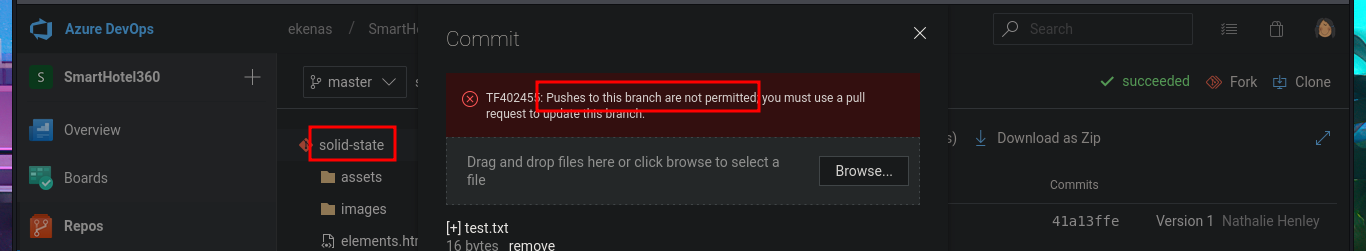 # --> Repos --> Upload file(s) Pushes to this branch are not permitted :(