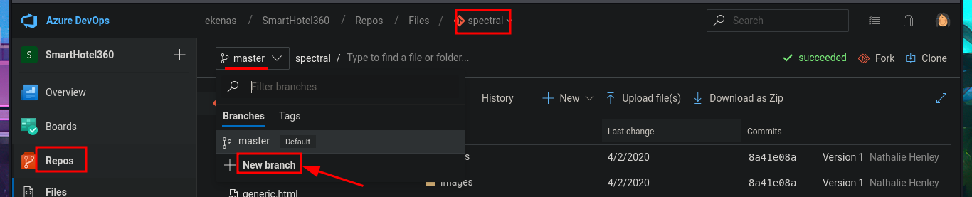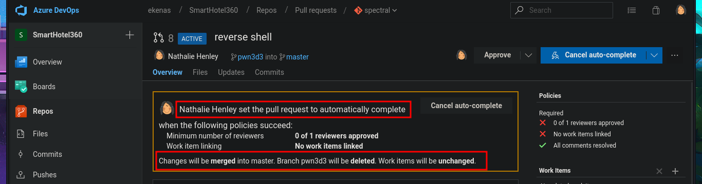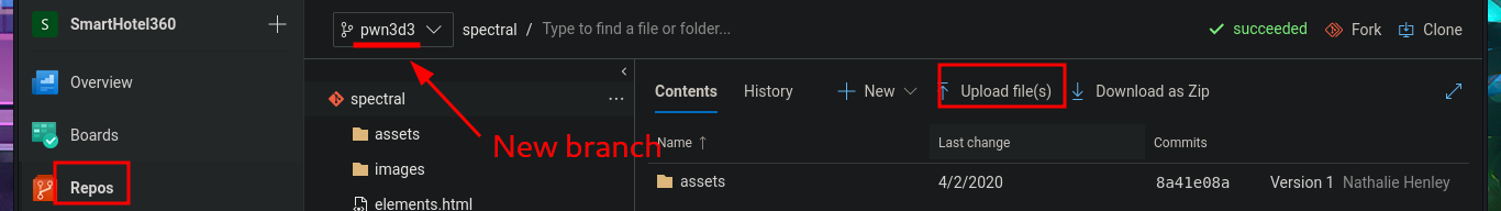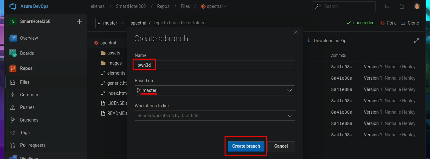 # --> Repos --> New Branch --> Create a branch [pwn3d]