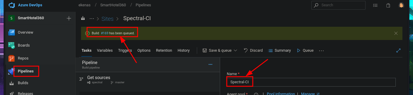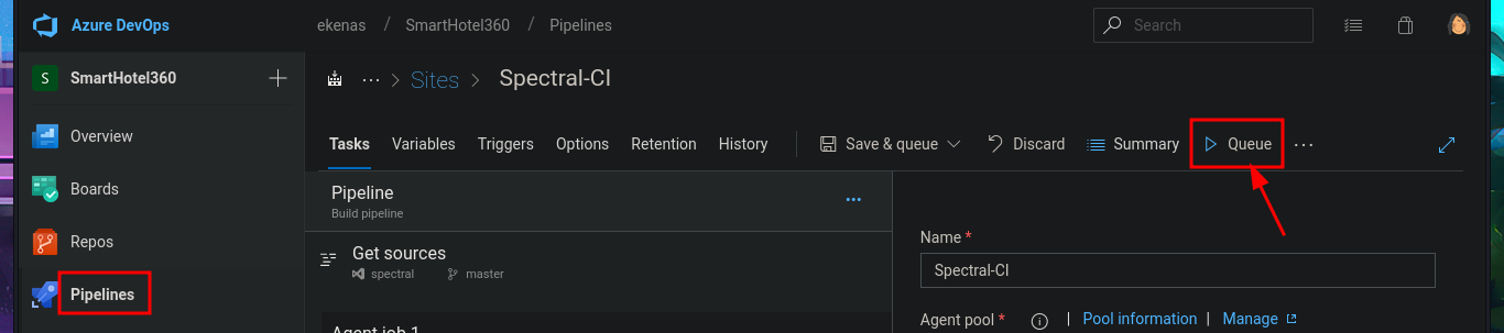 # Spectral-CI (View) --> Tasks --> Agent job 1 --> Deploy web site
