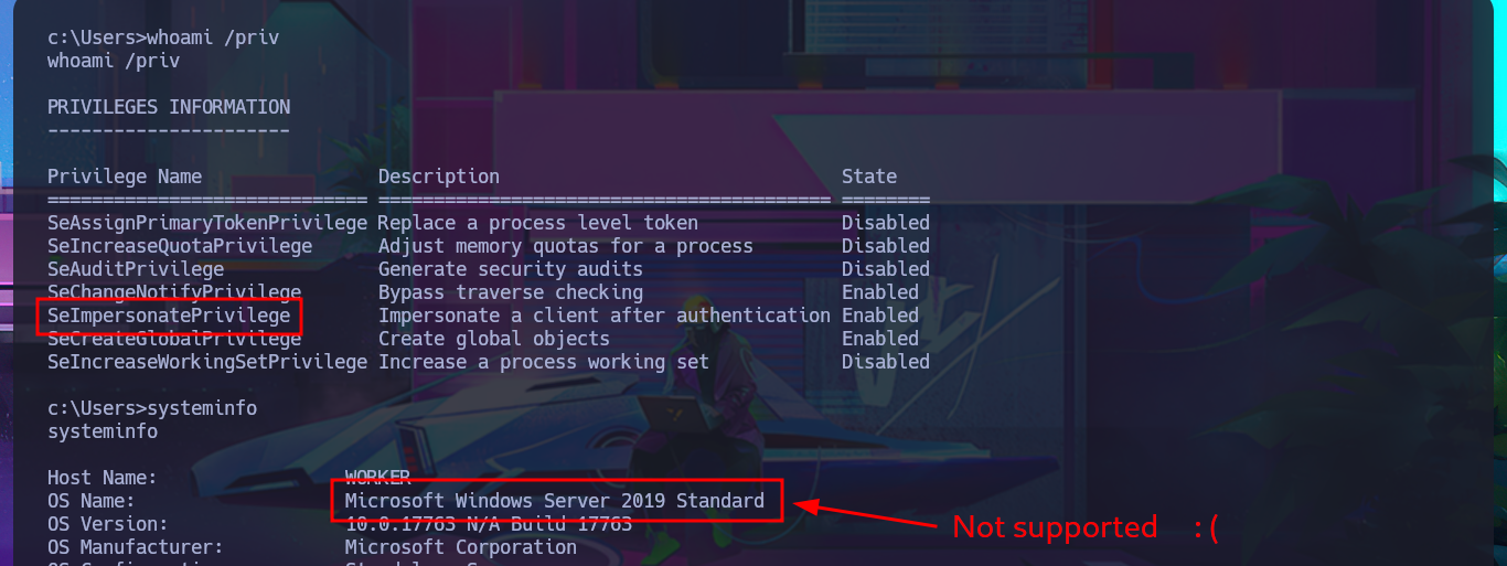# SeImpersonatePrivilege Impersonate a client after authentication Enabled