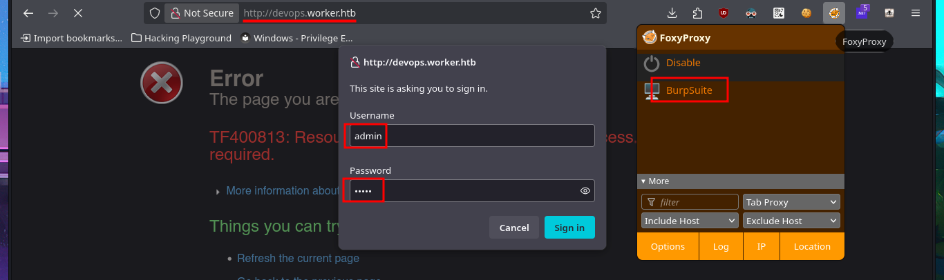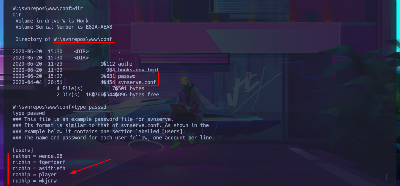 Although I was able to access the system through the Reverse Shell, I don’t have permission to enter the personal directories of the Windows accounts. The SeImpersonatePrivilege privilege is enabled, but the OS version is not vulnerable to RottenPotatoNG, so I may need to use an automated tool to speed up the search for a possible attack vector. But before continuing, I remember that the web application repositories were stored on the Windows w volume, and now I’m on c, so with a few enumeration commands, I confirm that an additional volume is accessible. Once I change the file system, I find all the content related to Azure DevOps, as well as an extensive list of credentials in the configuration files. I create two custom dictionaries of usernames and passwords to perform a brute force attack with crackmapexec, without success. I cannot apply the same attack technique on the Azure DevOps platform with BurpSuite.