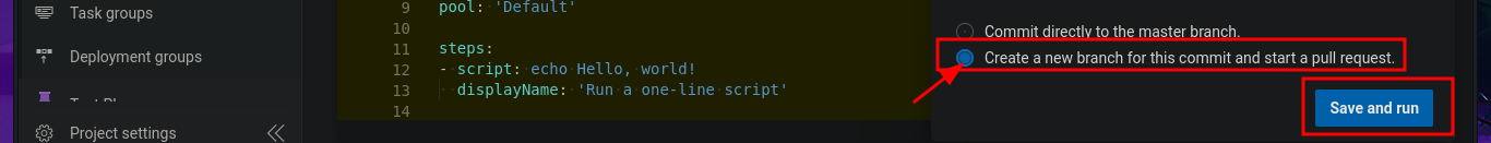 # Create a new branch for this commit and start a pull request. --> Save and run